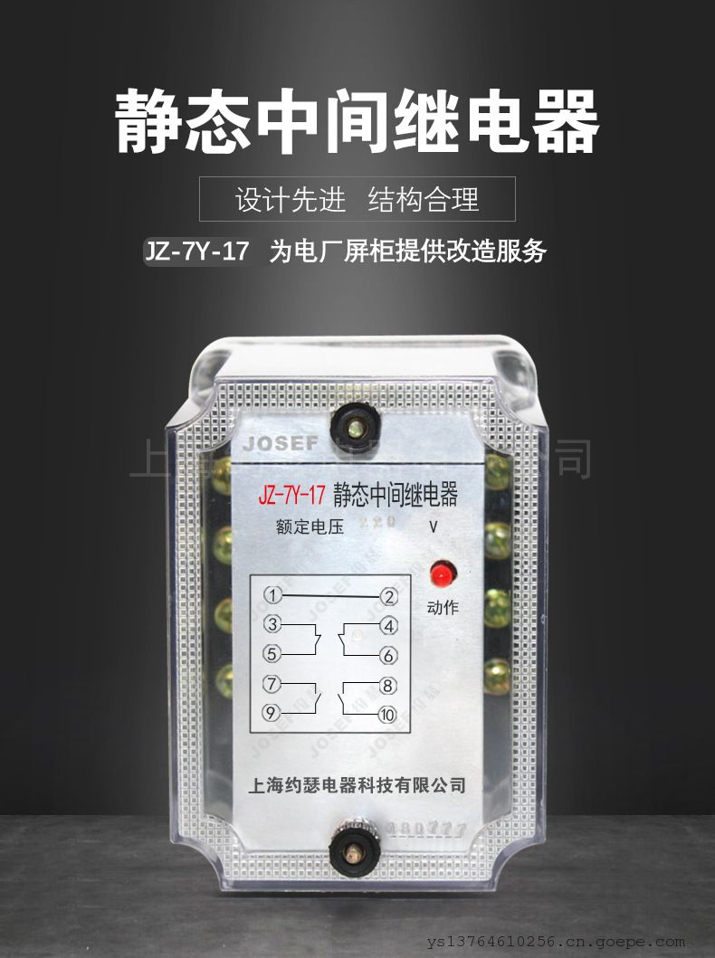 品牌:JOSEF约瑟 型号:JZ-7Y-17 应用领域:中间 产品系列:JZ-7系列 触点负载:40W 触点切换电流:220V