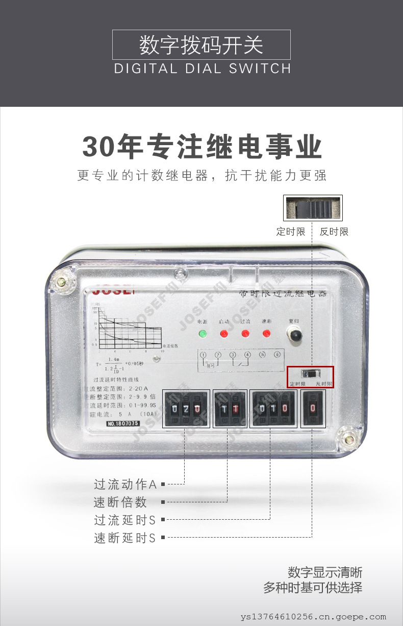 - JOSEF约瑟GL-14电流继电器 220VDC 0~5A 带板前接线附件