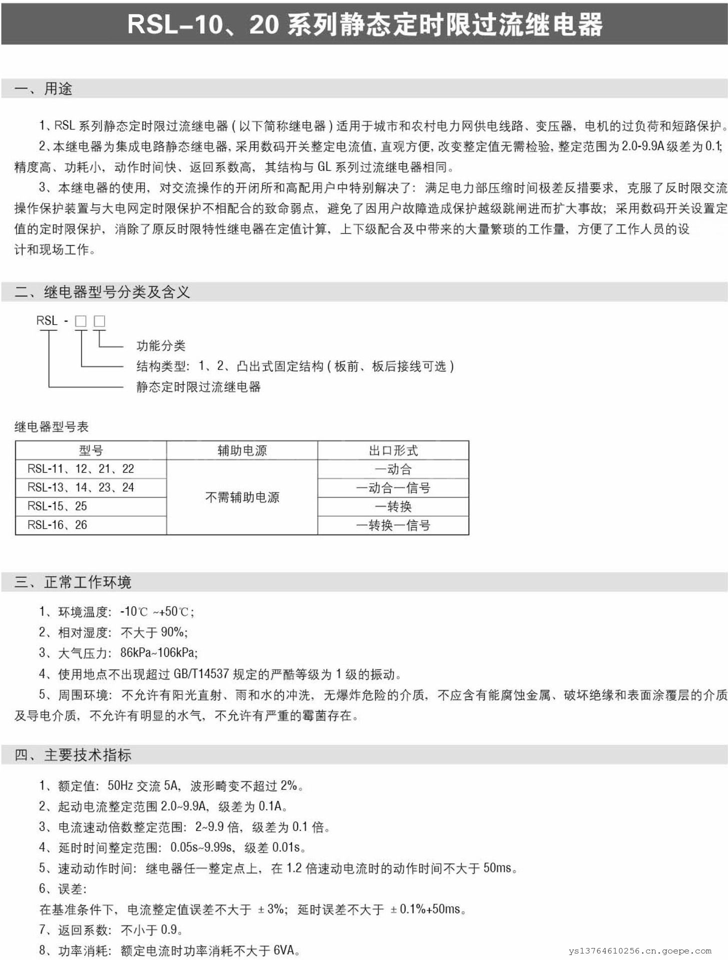 1、产品概述●RSL-15静态定时限过流继电器(以下简称继电器)适用于城市和农村电力网供电线路、变压器,电机的过负荷和短路保护。