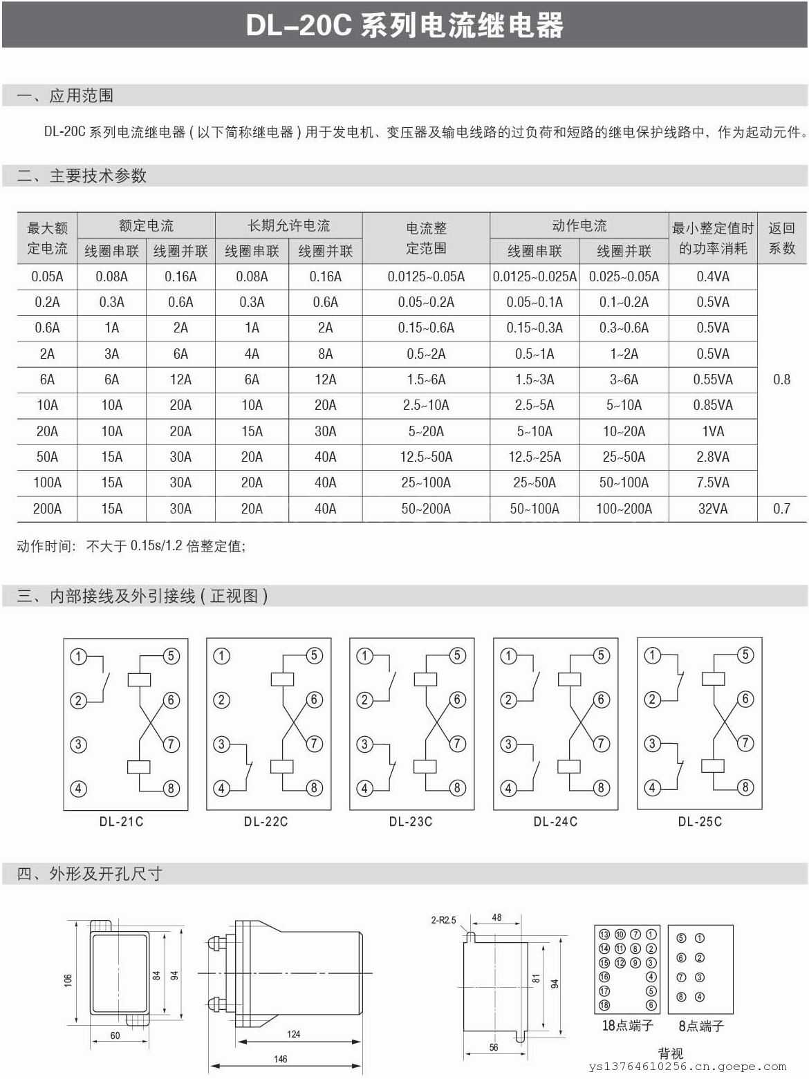 DL-20C系列电流继电器(以下简称继电器)用于发电机、变压器及输电线路的过负荷和短路的继电保护线路中,作为起动元件。