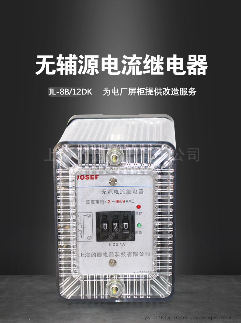 - JOSEF约瑟JL-8B/12DK无辅源电流继电器 0.1-9.9A 板前接线A11Q