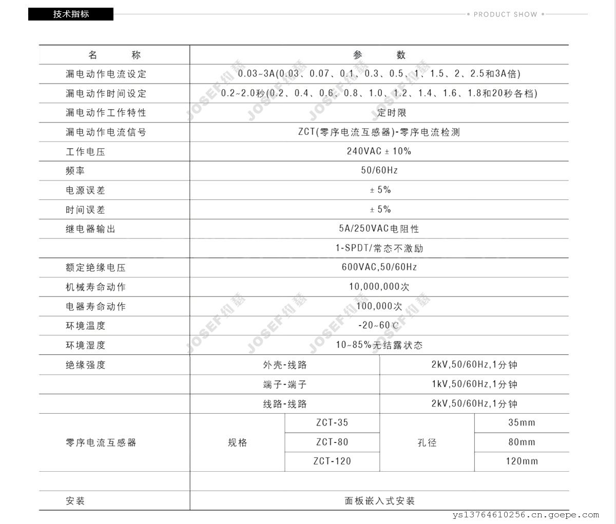 品牌:JOSEF约瑟 型号:ZLR-G81+ZCT-100 应用领域:漏电 产品系列:ZLR系列 触点负载:6W 触点切换电流:220V