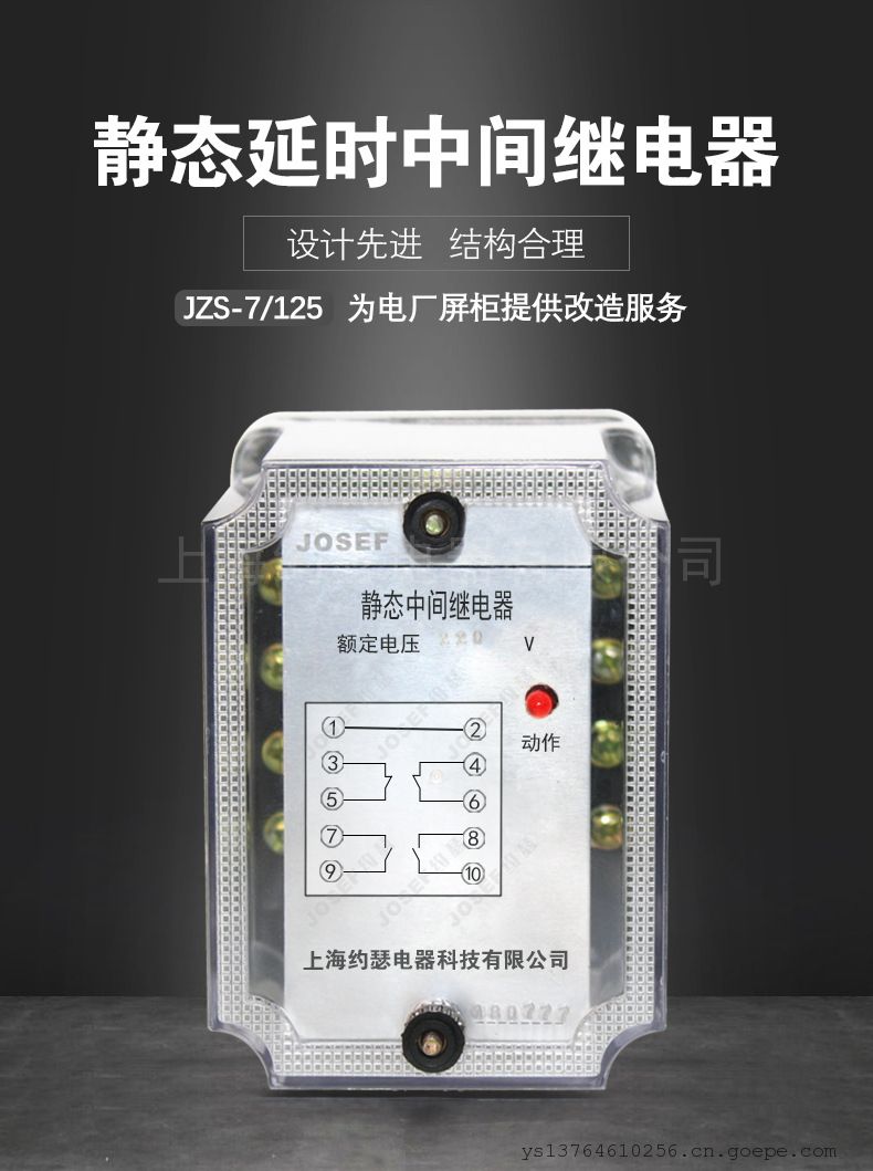 - JOSEF约瑟JZS-7/125延时中间继电器 DC220V 0.02-9.99S