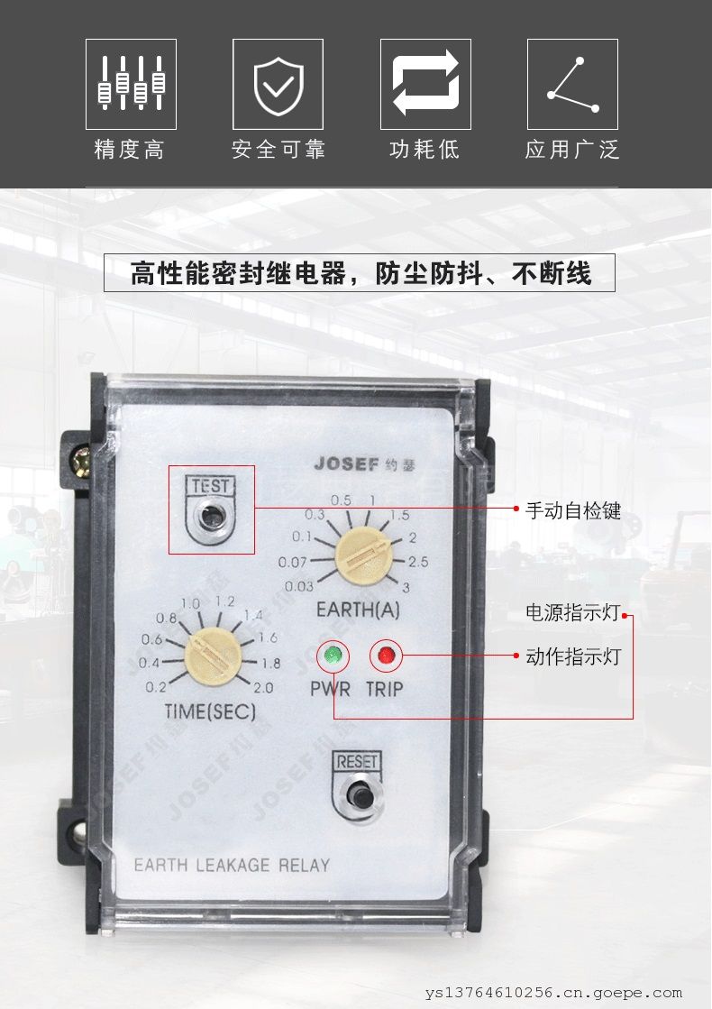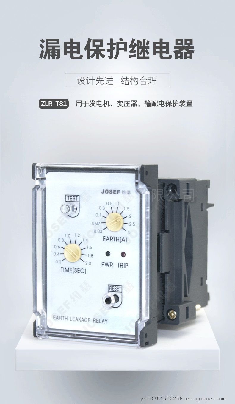 品牌:JOSEF约瑟 型号:ZLR-T81 应用领域:漏电 产品系列:ZLR系列 触点负载:6W 触点切换电流:220V