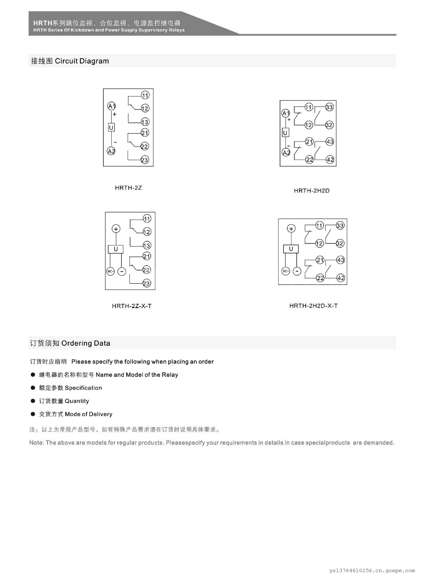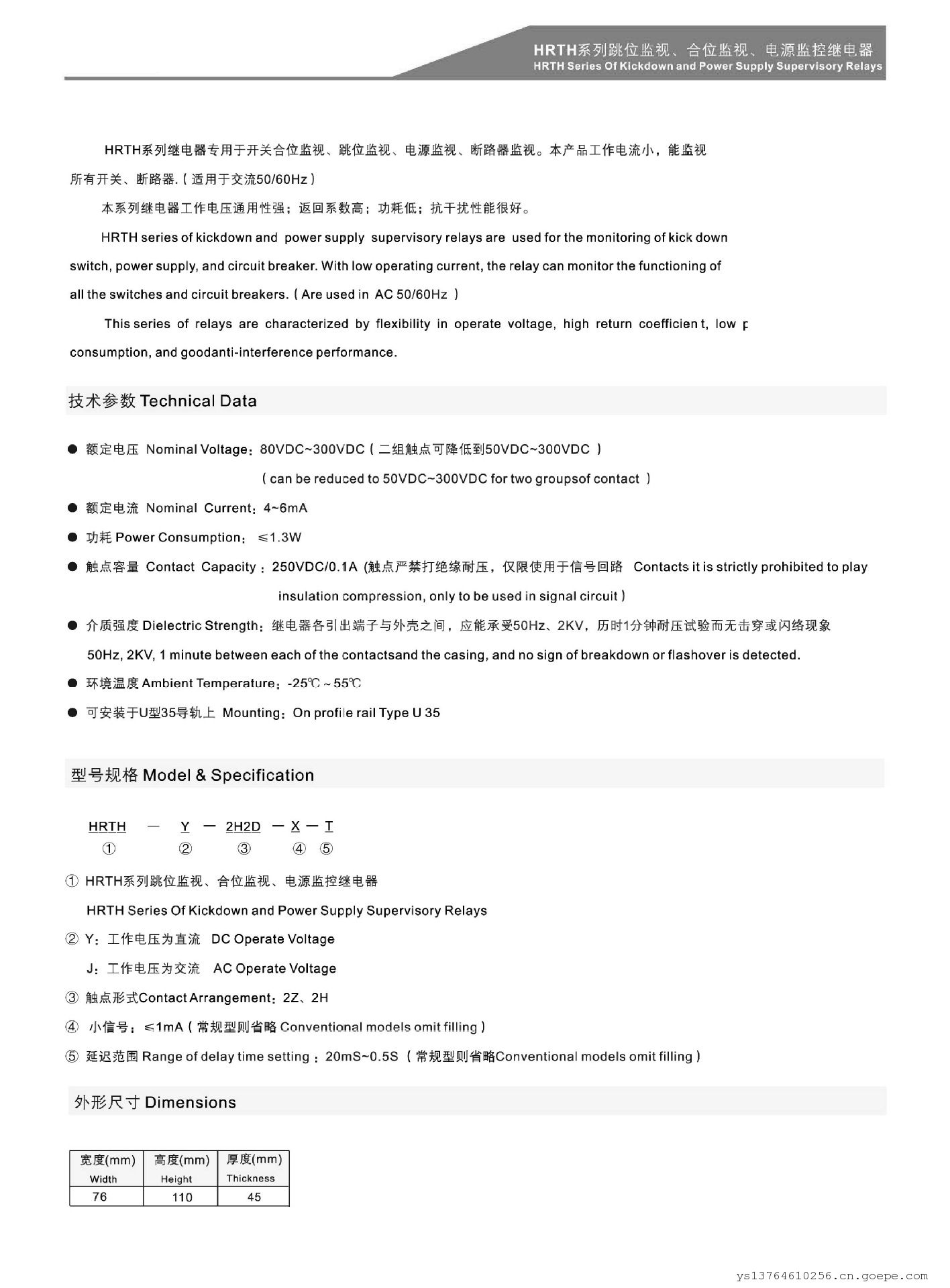 一、HRTH系列跳位、合位、电源监视继电器用途三合一继电器用于直流或交流操作的各种自动控制或保护线路中,可以直接控制分闸、合闸回路,监视控制电源,并方便调节合闸回路和电源监视回路出口中间继电器断电返回的延时时间。