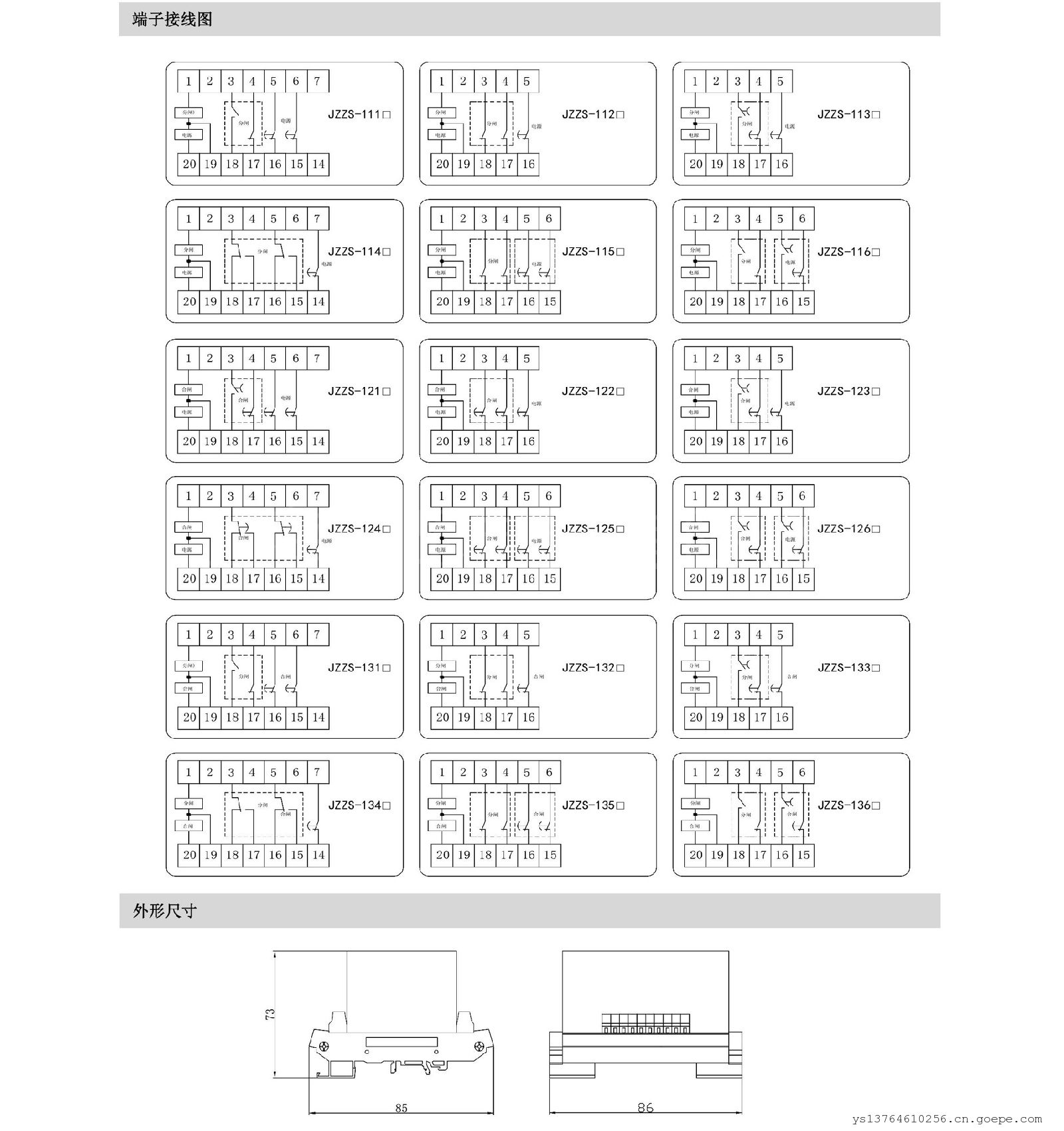可选延时特征号:可选延时返回 15mS~1.5S;15mS~3S端子接线图、外形尺寸图