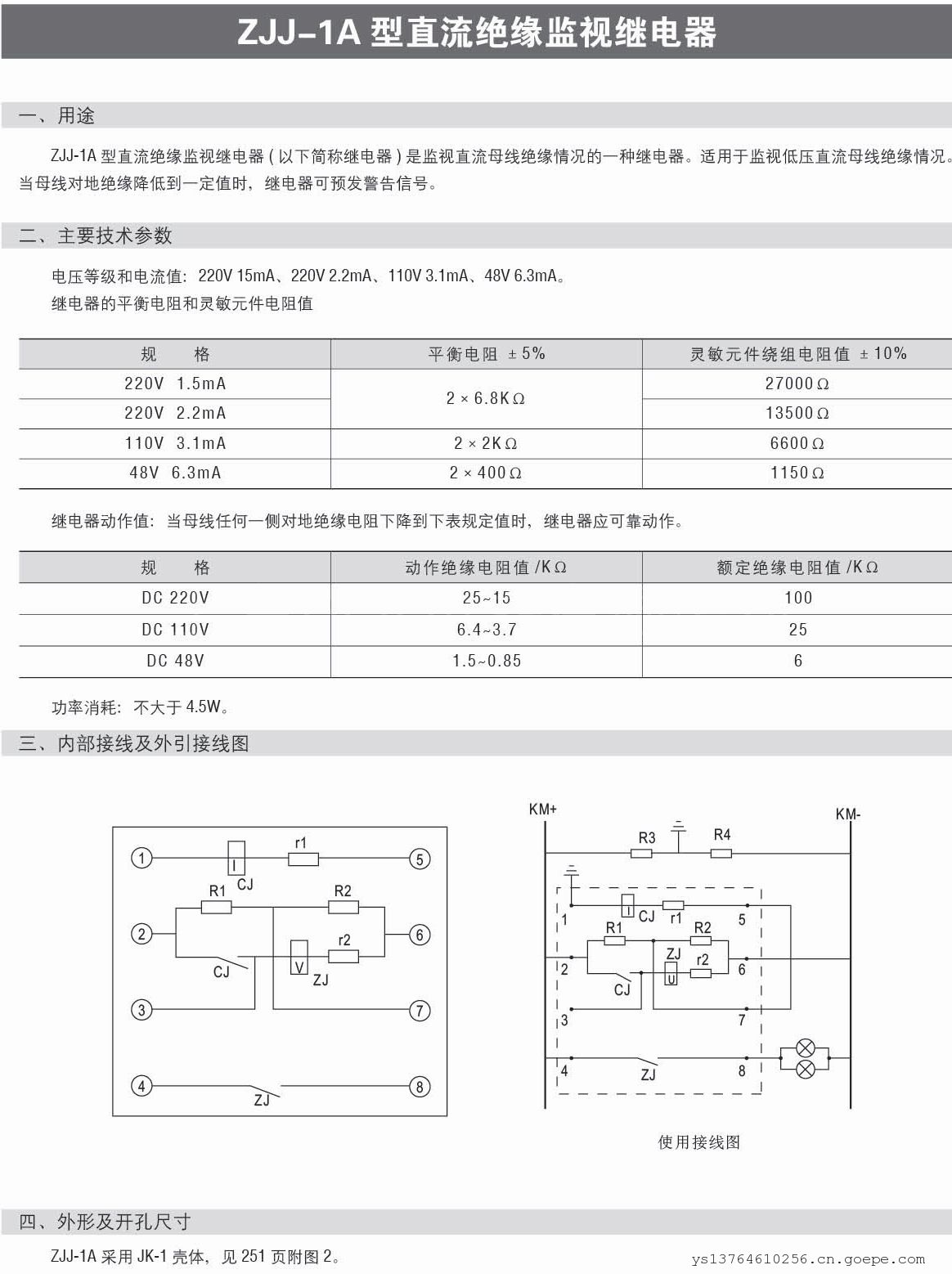动作绝缘电值:220 V时为(25~15) k2:110 V时为(6.3.7) k2:48 V时为(1.50.85)k