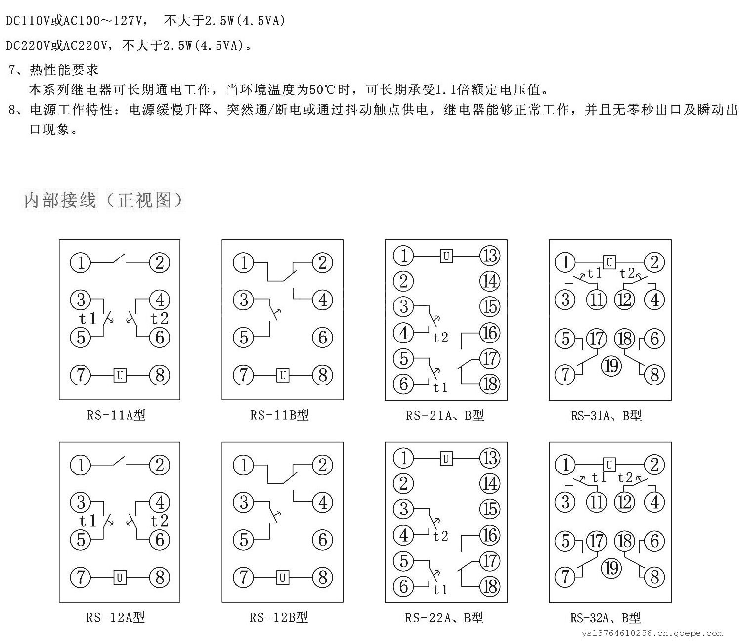 降低继电器电压不小于额定电压的10%时,继电器触点应可靠返回。6、功率消耗