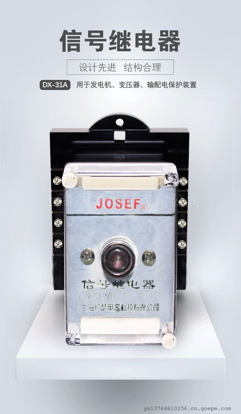 品牌:JOSEF约瑟 型号:DX-31 应用领域:信号 产品系列:DX系列 触点负载:40W 触点切换电流:220V 系列型号