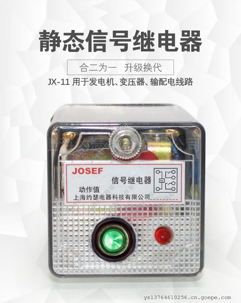 品牌:JOSEF约瑟 型号:JX-11 应用领域:信号 产品系列:JX系列 触点负载:40W 触点切换电流:220V 系列型号: