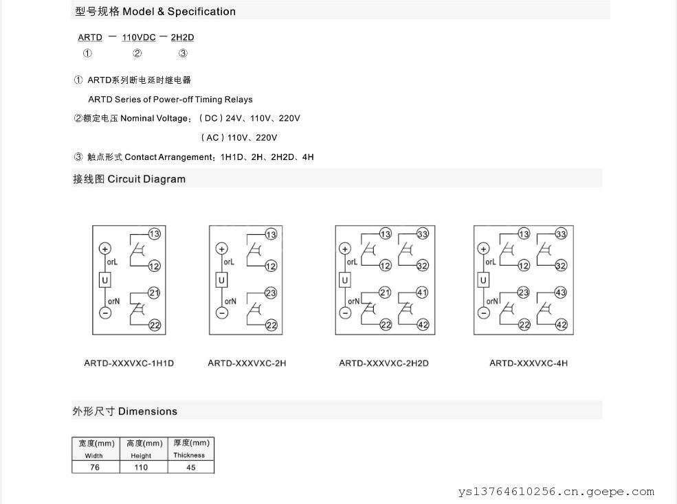 ARTD-110VAC-1H1D断电延时继电器;ARTD-110VAC-2H断电延时继电器;