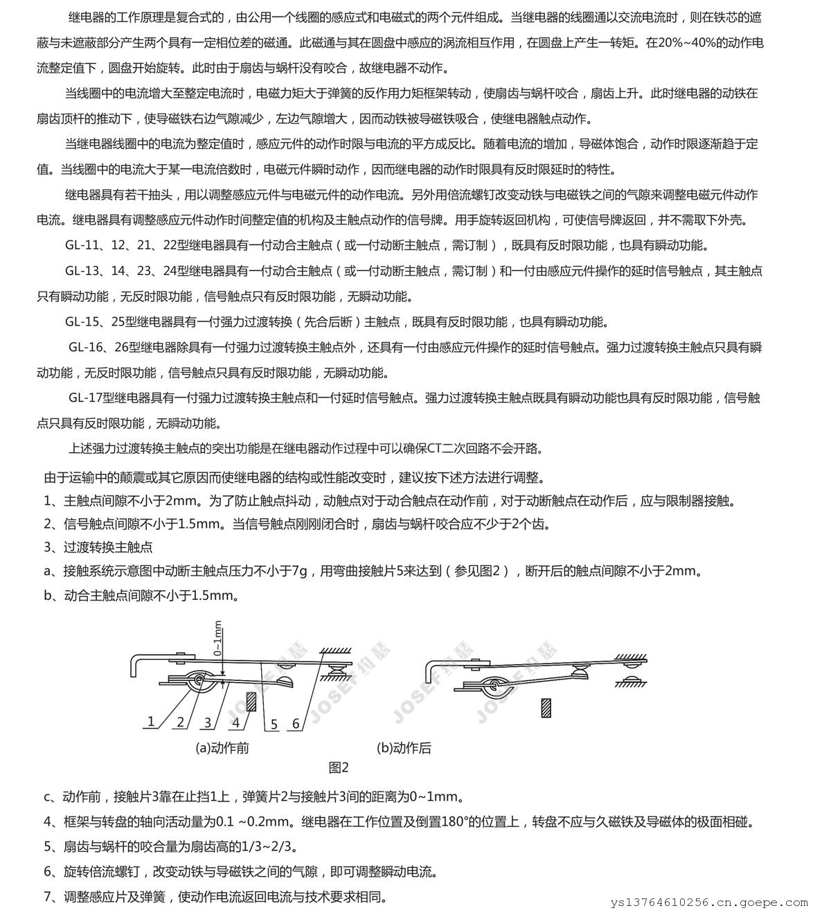 GL-15、25型继电器具有一付强力过度转换(先合后断)主触点,既具有反时限功能,也具有瞬动功能。