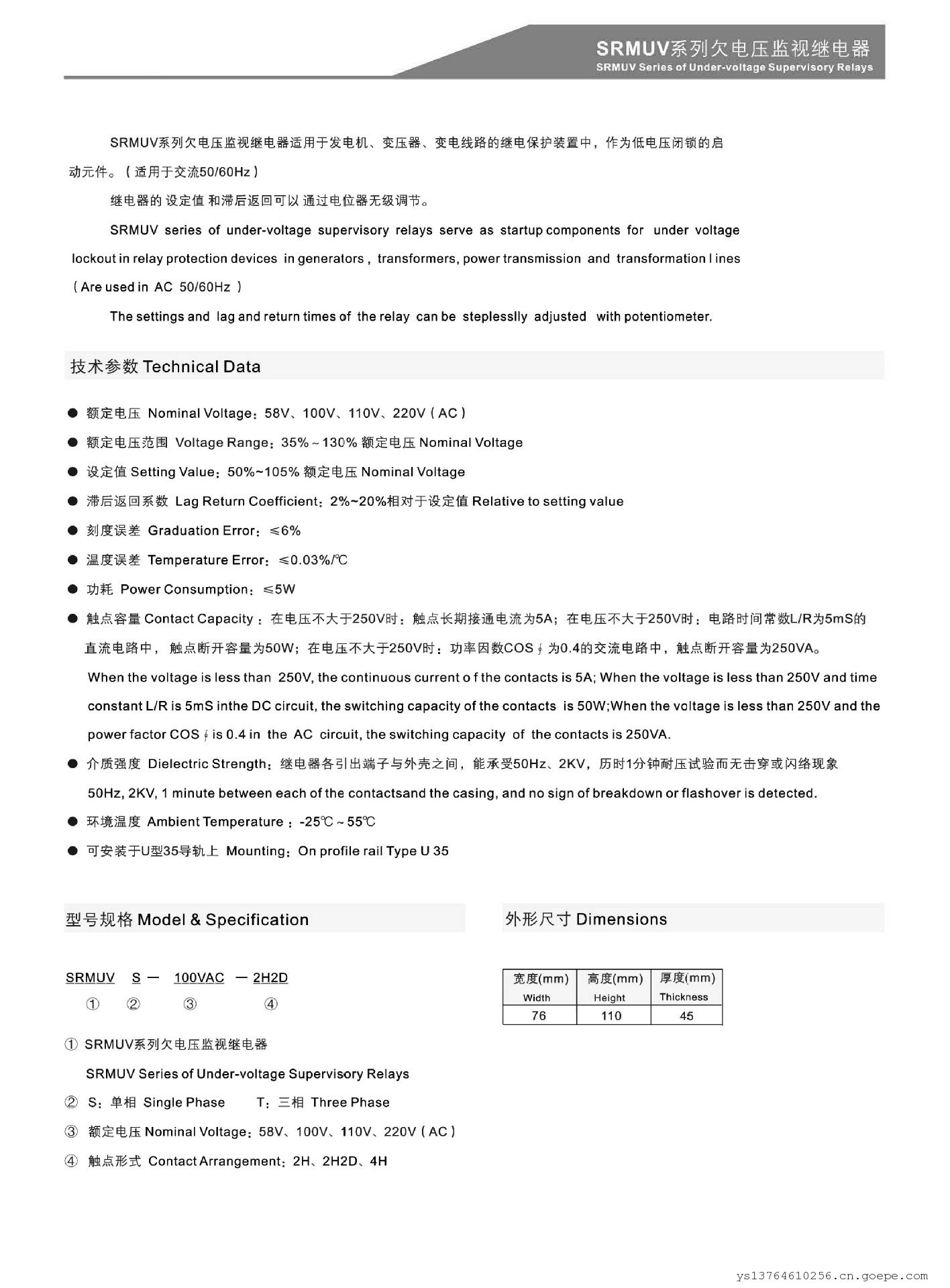 SRMUVS-110VAC-4H欠电压监视继电器;SRMUVS-220VAC-4H欠电压监视继电器;SRMUVT-58VAC-2H欠电压监视继电器;SRMUVT-100VAC-2Z欠电压监视继电器;