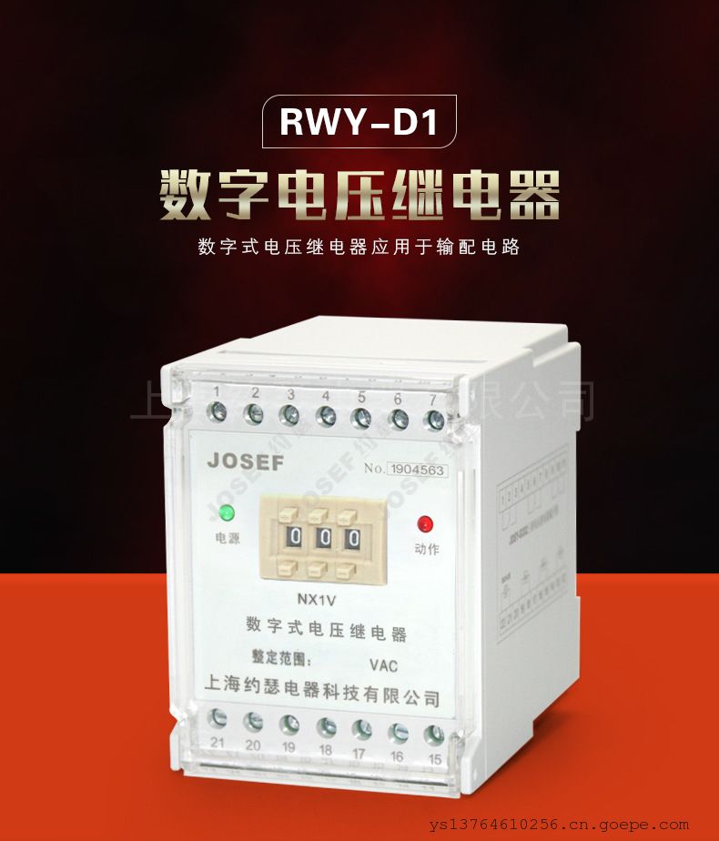 - JOSEF约瑟WY-D1/3 AC380V 180~440VRWY-D系列无辅助电源电压继电器 导轨安装