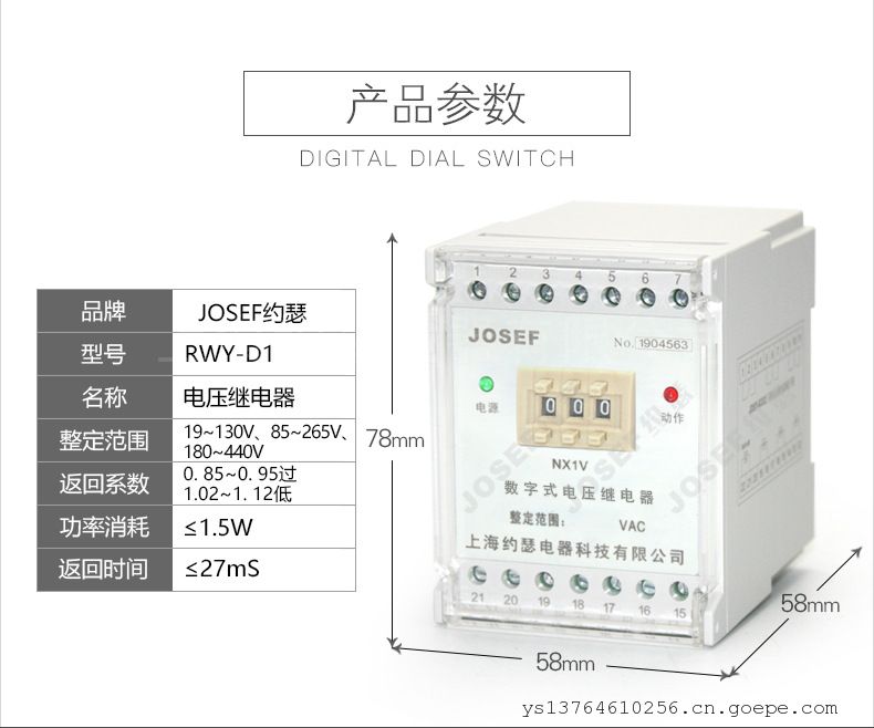 品牌:JOSEF约瑟 型号:WY-D1/3 AC380V 180~440V 应用领域:电压 产品系列:RWY-D系列 触点负载:40W 触点切换电流:220V 系列型号