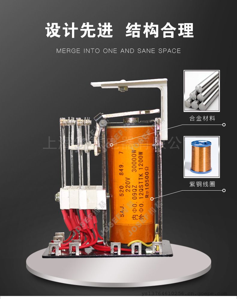 触点容量:在电压不超过250V ,电流不超过5A,时间常数为5±0.75ms的直流有感负荷电路中,产品输出触点的断开容量为50W。输出触点在上述规定的负荷条件下,产品能可靠动作及返回5×104次。输出触点长期允许接通电流为5A。