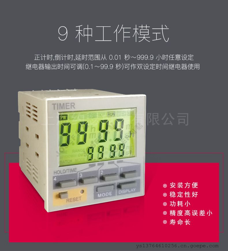 正计时,倒计时,延时范围从 0.01 秒~999.9 小时任意设定