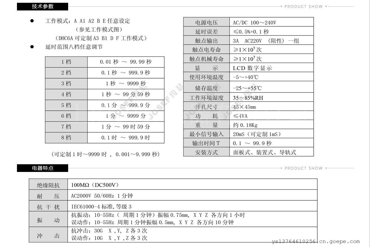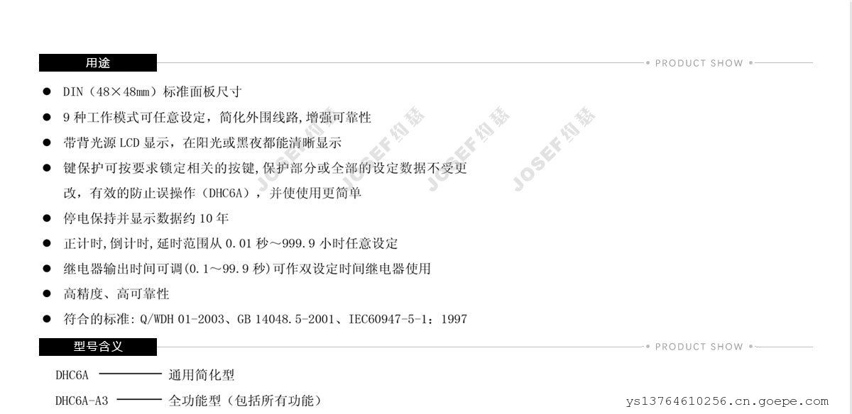 品牌:JOSEF约瑟 型号:DHC6A AC/DC100-240V 应用领域:时间 产品系列:DHC6A系列 触点负载:40W 触点切换电流:110V 特点