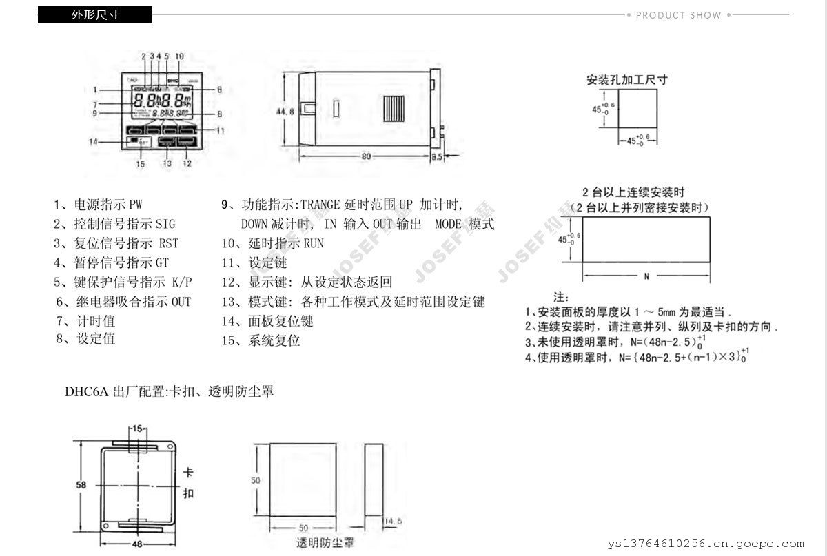 - JOSEF约瑟DHC6A AC/DC100-240VDHC6A系列时间继电器 面板安装