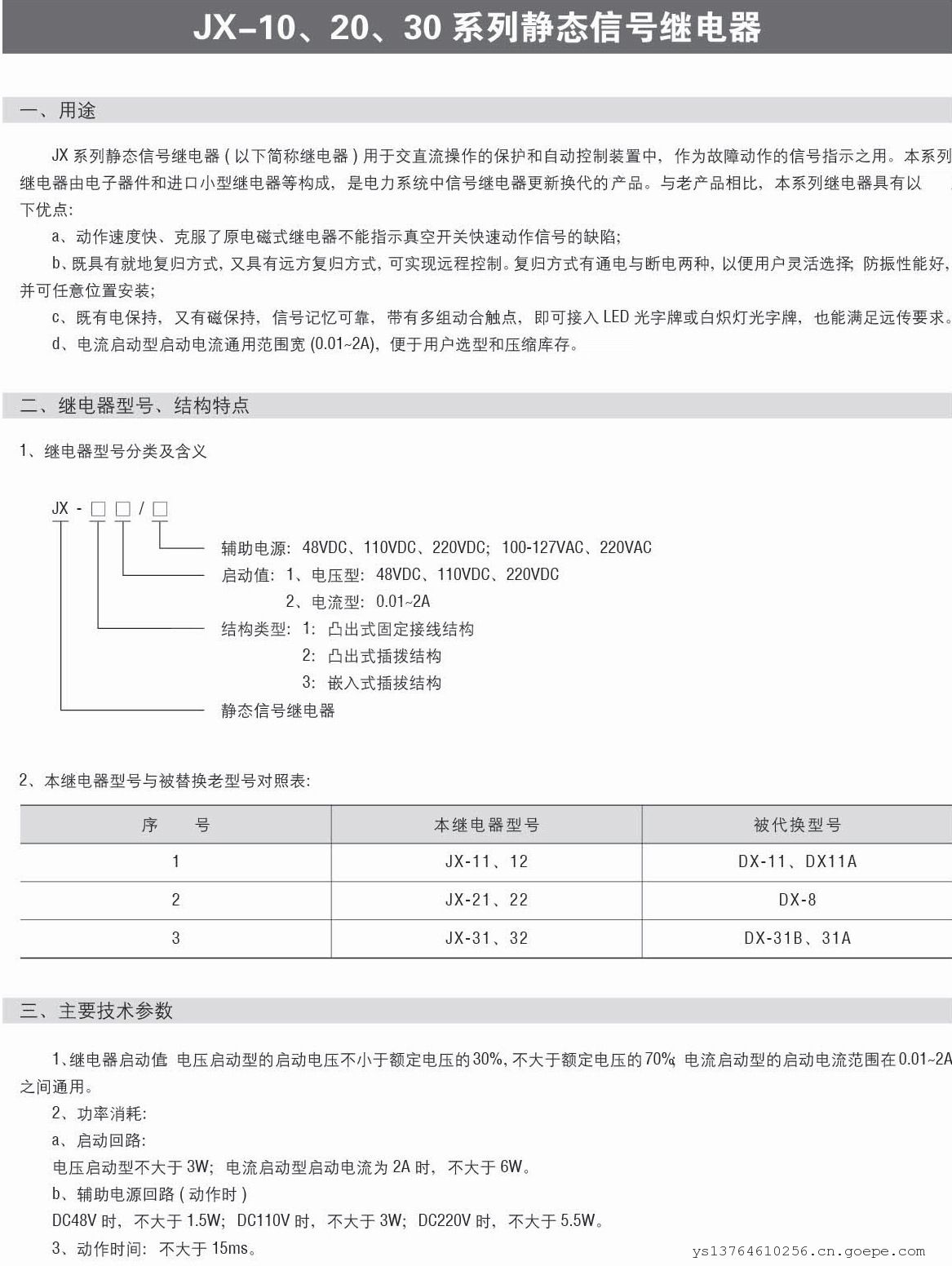 静态信号继电器 JX-111C 启动电流0.075A 辅助电压220V 复归电压220V