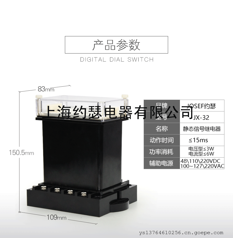 品牌:JOSEF约瑟 型号:JX-32 应用范围:机械设备 额定电流:2 A 额定电压:250 V 触点负载:40 触点切换电流:220 种类:信号继电器 线圈电源:220 线圈功率:6 用途