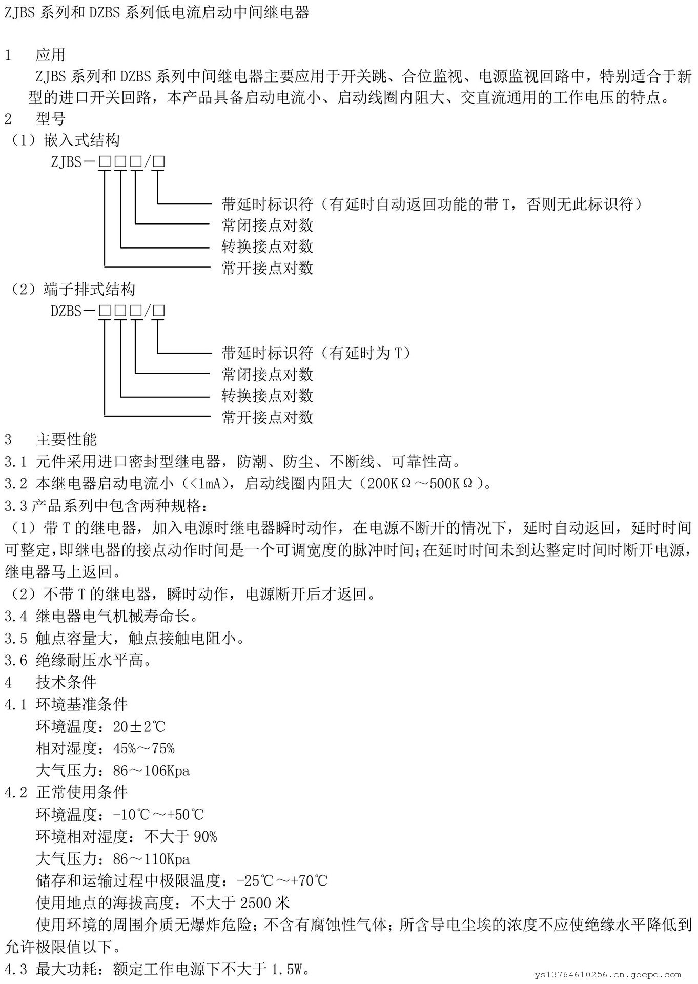 ZJBS 系列和 DZBS 系列中间继电器主要应用于开关跳、合位监视、电源监视回路中,特别适合于新型的进口开关回路,本产品具备启动电流小、启动线圈内阻大、交直流通用的工作电压的特点。型号2