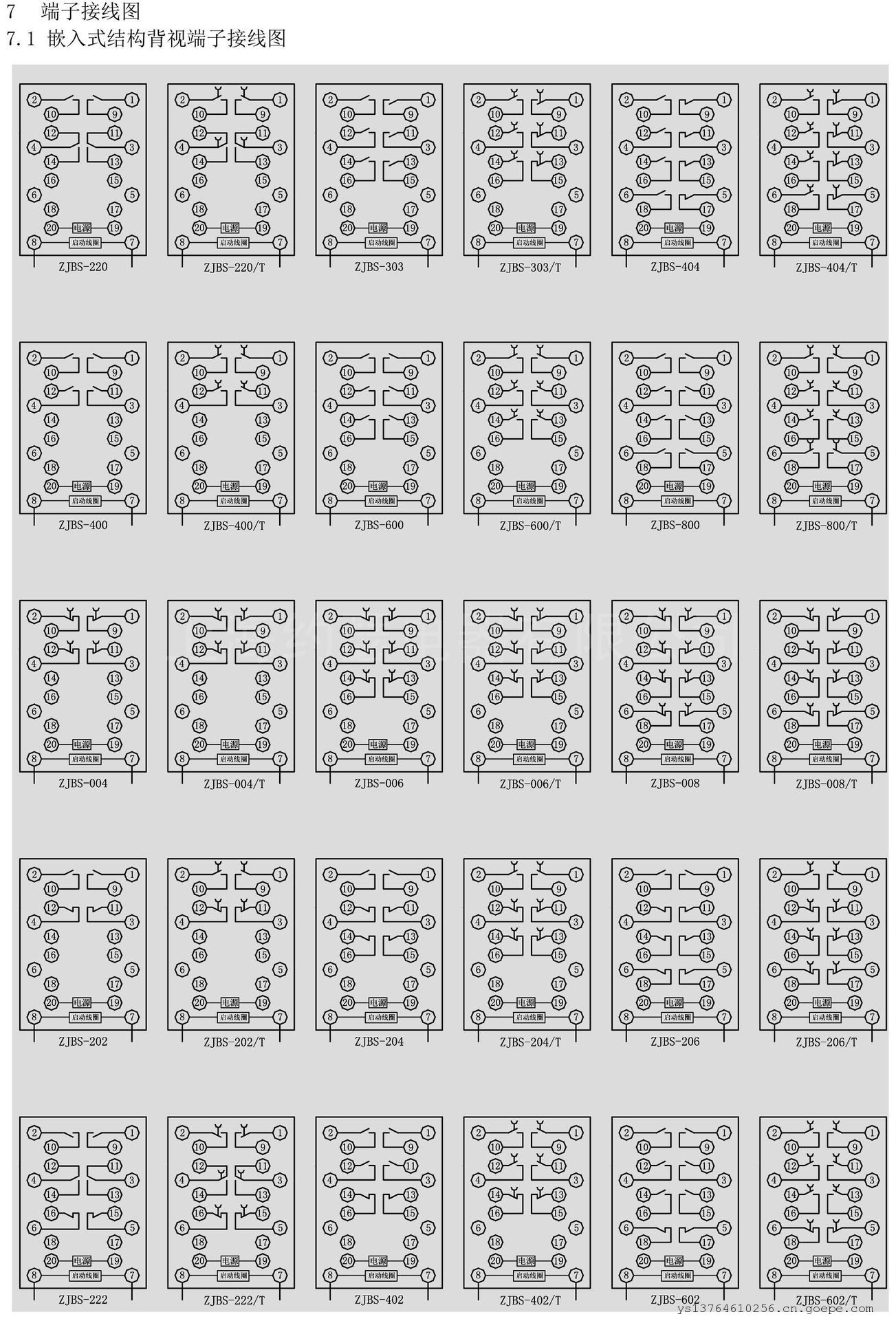 (1)带T的继电器,加入电源时继电器瞬时动作,在电源不断开的情况下,延时自动返回,延时时问可整定,即继电器的接点动作时间是一个可调宽度的脉冲时间:在延时时间未到达整定时间时断开电源,继电器马上返回。