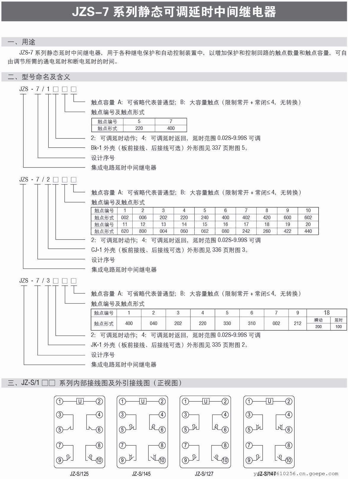 机械寿命和电寿命:机械寿命指的是继电器触点可以安全操作的次数,而电寿命则指的是线圈可以安全通电的次数。这些参数对于继电器的长期稳定性和可靠性非常重要。中间继电器 JZS-7/223 DC220V 板前接线