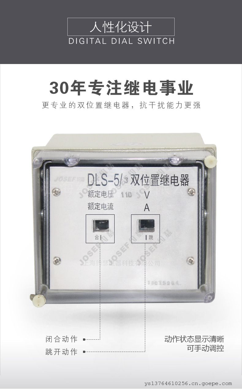 品牌:JOSEF约瑟 型号:DLS-5/2G 应用领域:航空航天 产品系列:DLS 触点负载:40 是否专供外贸:否 双位置继电器 DLS-34A 220VDC 柜内底板固定式安装