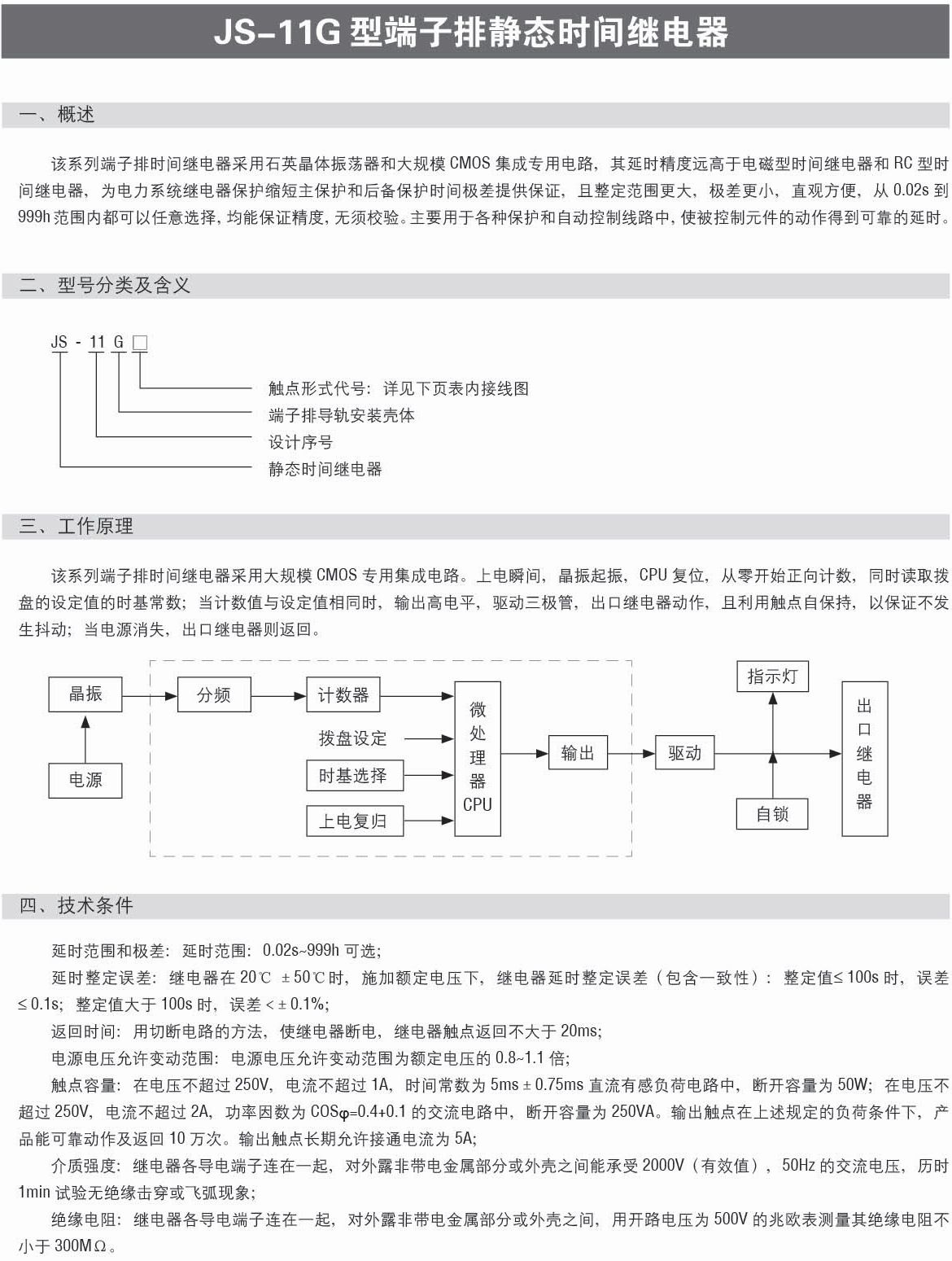 JS-11G1是一款采用石英晶体振荡器和大规模CMOS集成电路的静态时间继电器。它拥有广泛的延时范围,从0.02秒到999小时可选,能够为电力系统继电器保护提供精确的时间控制。