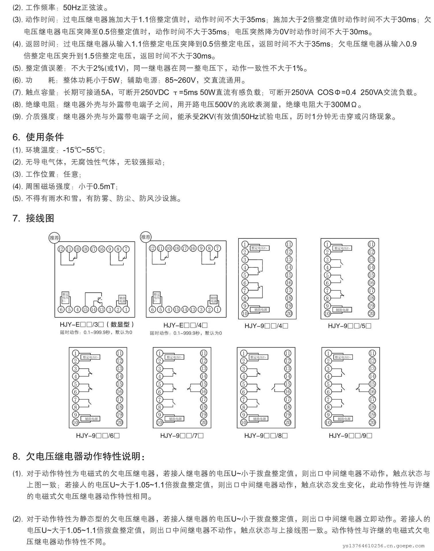 瞬时动作特性:HJY系列数字式交流电压继电器具有瞬时动作特性,适用于发电机、变压器、输电线路的继电保护装置中,作为过压或欠压的闭锁启动元件。