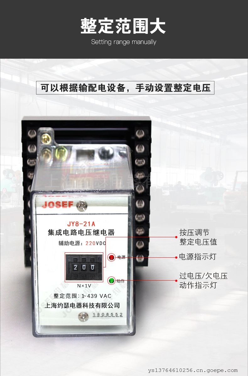 - JOSEF约瑟JY8-21A/3过电压继电器 DC110V 防护等级高,稳定性好