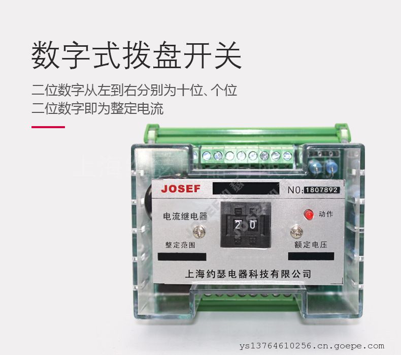 - 约瑟 JDL-1001B电流继电器 0.03~0.99A 电源AC220V 导轨式安装