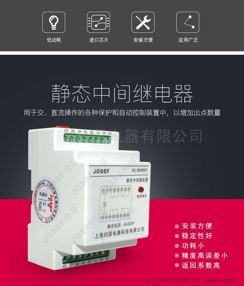 品牌:约瑟 型号:SRS-110VDC-2H2D-10A 应用范围:中间 额定电流:2 A 额定电压:220 V 触点形式:一开一闭 最小包装数:1 一、概述