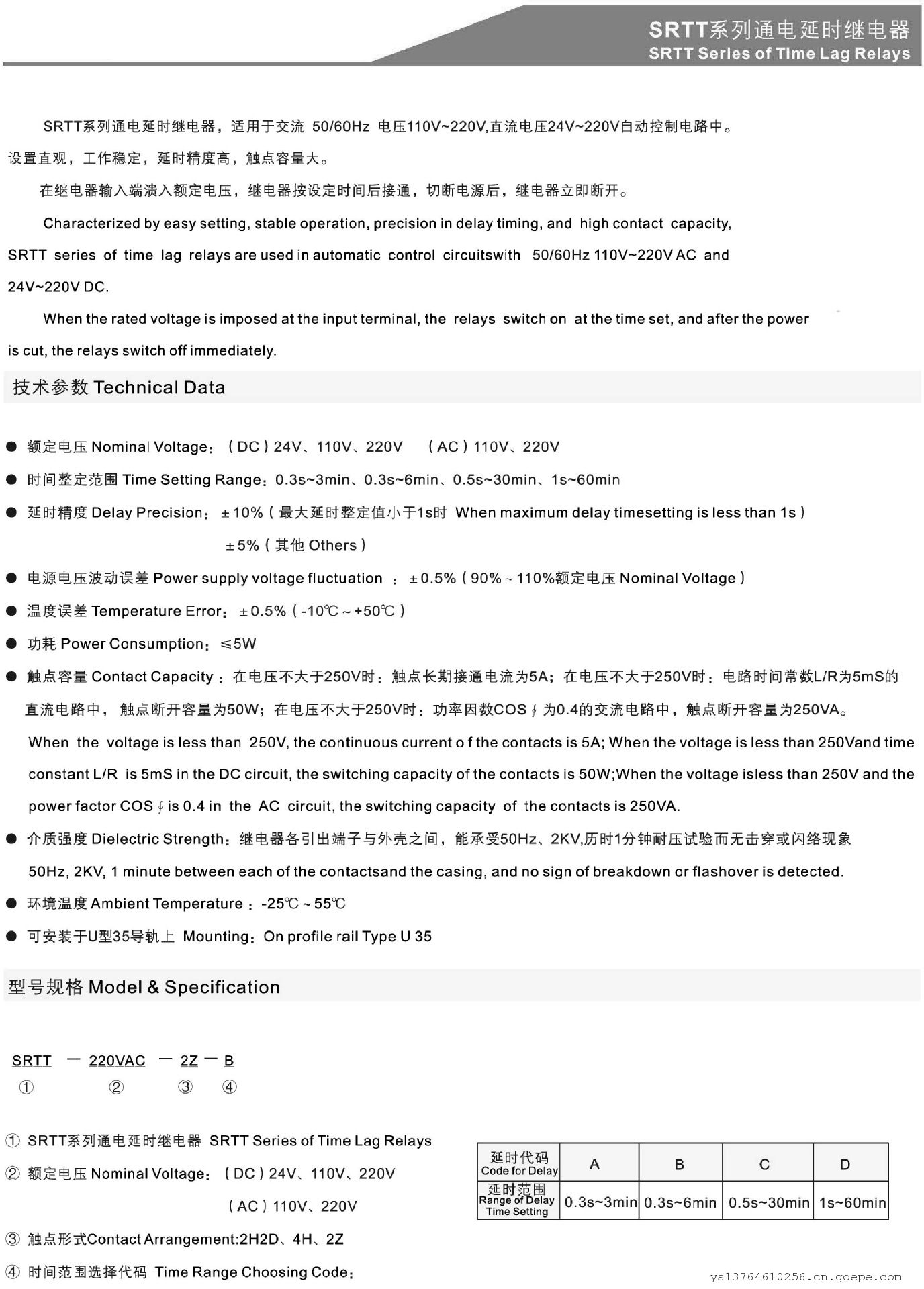 - 正确选型:在选择SRTT-2Z-A延时中间继电器时,应根据实际电路的要求选择合适的型号和规格。特别是要注意延时范围、触点形式以及额定电压和电流等参数。