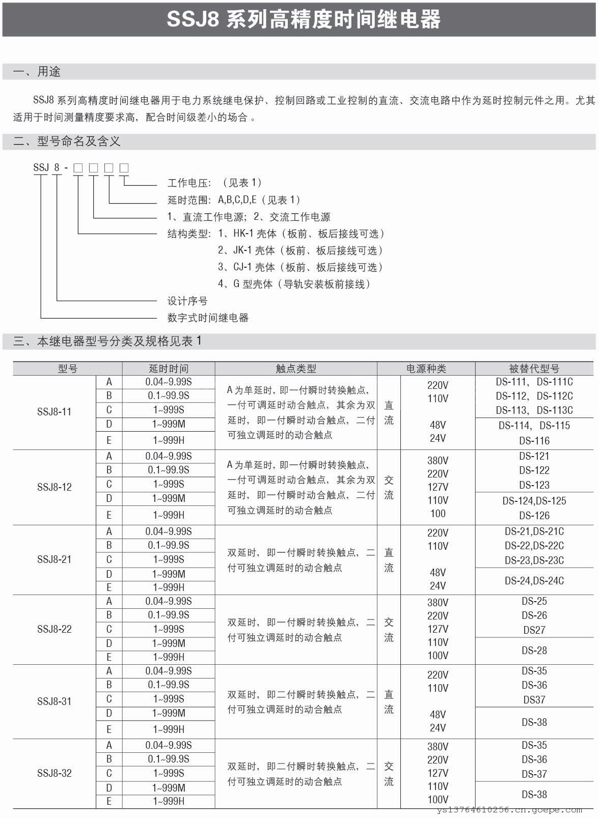SSJ8-32E高精度时间继电器; -