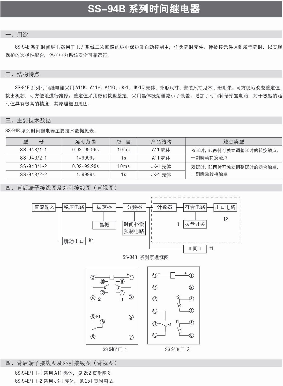 - 用途:主要用于电力系统二次回路的继电保护电路及自动控制中,作为延时控制元件。