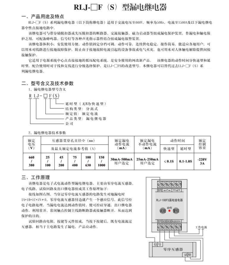 - 分级选择保护:动作时间分快速型和延时型,配合使用进行分级选择保护,是替代过去LLJ-□F(S)、LLJ-□H(S)、JD1及JD3系列漏电继电器的理想产品。