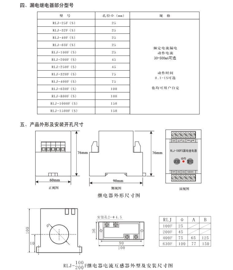 RLJ-630F漏电继电器RLJ-400F漏电继电器