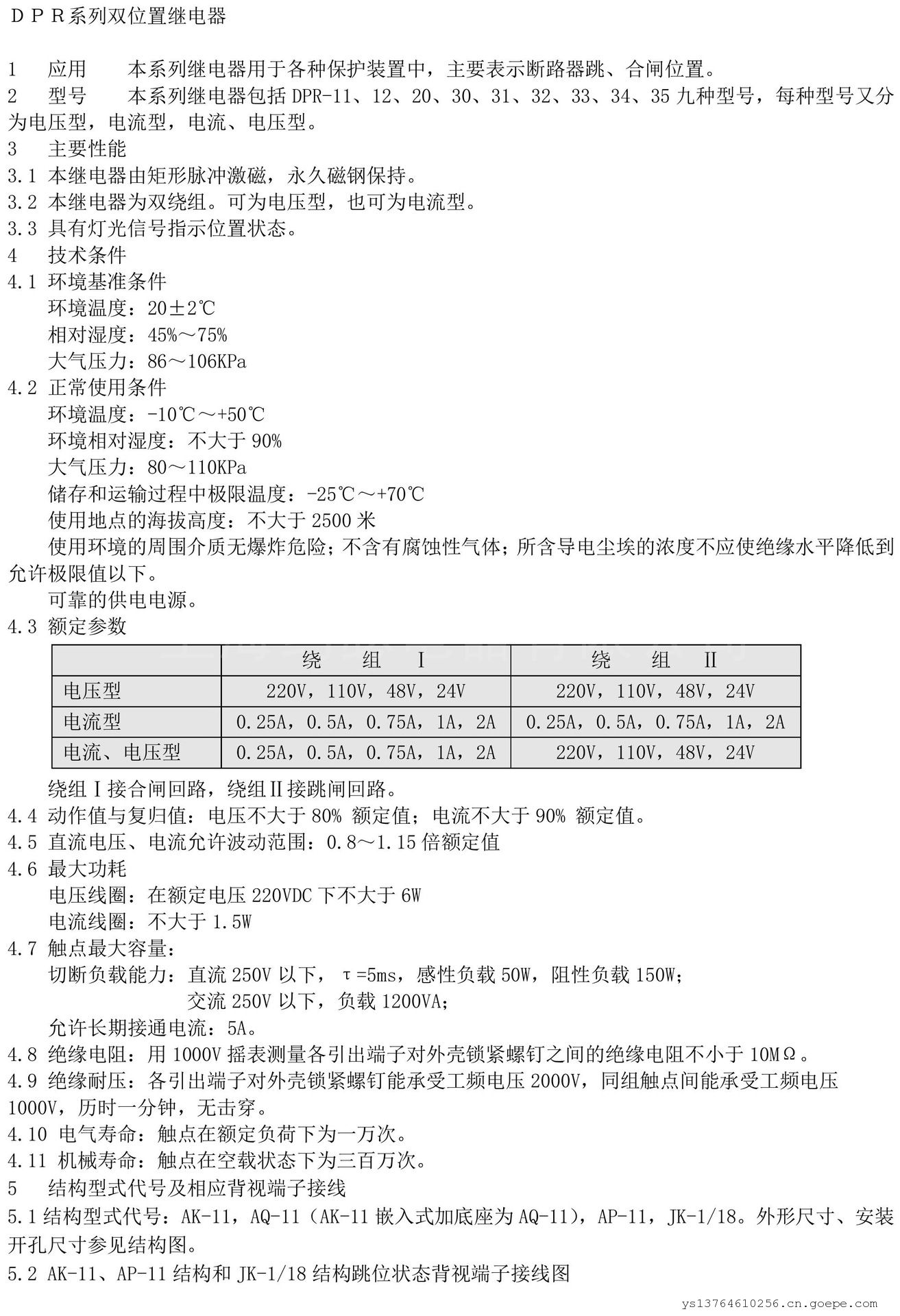 - 该系列继电器包括多种型号,每种型号又分为电压型、电流型和电流、电压型。